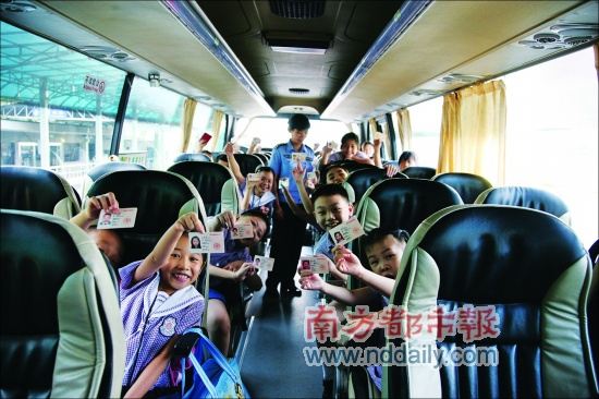 昨天開學,跨境學童坐上校巴,開心地展示過關證件。通訊員劉卉攝