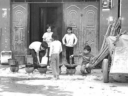周一到周五每天下午5點左右,貴州省羅甸縣班仁鄉唯一的街道上有一道特殊的場景——小至七八歲,大到十四五歲的孩子們蹲在街邊,或淘米洗菜,或生火做飯。炊煙從簡易灶里升起,彌漫了整條街。