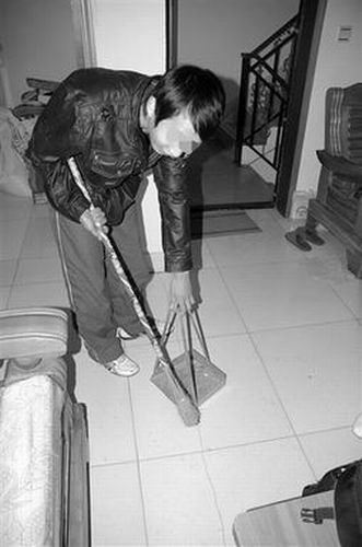 小斌聽說老師來訪,趕緊打掃家里的衛生