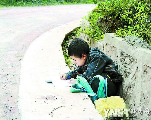 -山里娃公路邊寫作業(yè)