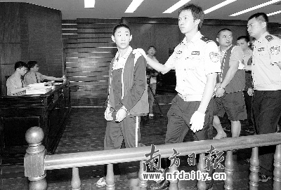 庭審后,一臉稚氣的譚某權向旁聽席的父母張望。本報記者蘇仕日攝