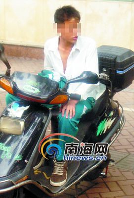 一學生騎著摩托車等同學。南國都市報記者李小崗 攝
