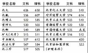昨天(10日),本市高招一批錄取工作正式開始,17所高校分別確定了在京調檔線或實際錄取線。其中北京大學的文科調檔線為626分,超過清華4分;理科調檔線650分,比清華低6分。