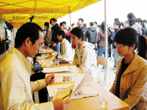 從11月底開始,校園招聘會在廣州各高校如火如荼地進行。截至目前為止,共有10多場針對本專科生、研究生的招聘會舉行。日前,以房地產及相關行業為主,以IT行業及相關產業為輔,面向從化6所高校的大型綜合招聘會在廣州城建職業學院舉行。據悉此次參加招聘會共邀請138家企業參加,實際到場單位近120家,共提供崗位1000多個,約5000多個職位,吸引了從化地區6所學校近萬名應屆大學畢業生參加。