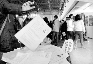 此次招聘會上,出現(xiàn)了個別公司將求職者的簡歷亂扔的現(xiàn)象。招聘方對此的解釋是,扔掉的簡歷都不符合公司招聘的要求。