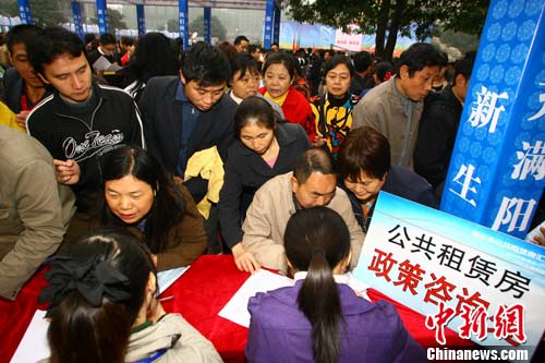 和章程福夫婦情況相仿的數(shù)百名農(nóng)民工把公租房咨詢點圍成里三層、外三層,小小的咨詢點幾乎要被擠爆。咨詢點工作人員介紹,重慶“民心佳園”公租房正在醞釀?wù)酵瞥觯簧俎r(nóng)民工前來詢問其租金和申請流程。咨詢點向農(nóng)民工發(fā)放的公租房宣傳資料上稱,重慶公租房的租金初步定為市場租金的60%,個人收入在2000元以下的人即可申請,申請者不受戶籍限制。