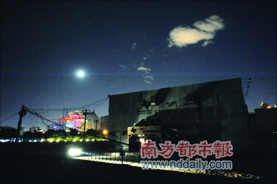 8月27日夜,西部牛仔餐吧孤獨挺立在空曠的工地中,工地用鐵絲網圍住,四周一片漆黑,唯一的光線來自蹲守警車的車燈。南都報記者 孫濤 攝