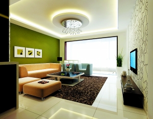 在本設(shè)計(jì)案例中,設(shè)計(jì)師利用戶(hù)型本身具有的寬闊視野,協(xié)調(diào)整體布局,將現(xiàn)代簡(jiǎn)約風(fēng)格之美體現(xiàn)得淋漓盡致。整體設(shè)計(jì)以淺色、暖色調(diào)為主,地毯和木質(zhì)門(mén)溫暖的材質(zhì)融合了茶幾黑色冷峻的色調(diào),在空間上達(dá)到冷暖的和諧,搭配松軟、舒適的沙發(fā)給居室營(yíng)造出溫馨、輕松的感覺(jué)。墻面的設(shè)計(jì)是此作品的亮點(diǎn),電視背景墻的線(xiàn)條自然,圖案打破整個(gè)格局內(nèi)的單一性。而對(duì)面的墻壁采用了柔軟的蘋(píng)果綠色,通過(guò)簡(jiǎn)單的幾幅畫(huà)框來(lái)點(diǎn)綴出雅致的居家氛圍。