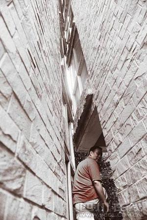 小區7棟與6棟之間有一個“V”字型的縫隙。經記者測量,兩棟樓最寬間距3.4米,越朝里靠得越近,在房子未出現問題之前,最窄處有幾厘米的距離,而如今,卻是6棟的墻體壓在了7棟上,連塑鋼窗都打不開,抬頭往上看時,從1樓到6樓,兩棟樓緊緊地貼在了一起。