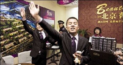 北京香醍售樓處員工在城管執法時起哄。本報記者 蒲東峰 攝