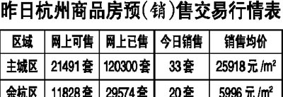 昨日,杭州主城區(qū)預定以及交易數(shù)量大幅下挫,預定量從前一個交易日的145套驟減為15套,交易量也從89套降至33套,成交均價為25918元/m2。余杭區(qū)再次延續(xù)了前日的下降走勢,預定數(shù)量從3套下跌為1套,交易量也從36套減少為20套,成交均價為5996元/m2。