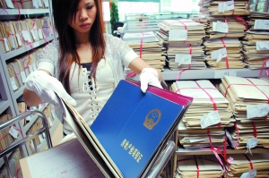 記者近日在房產(chǎn)證庫房看到,一捆捆積壓的房產(chǎn)證占用了很大空間。有關(guān)人士表示,要經(jīng)常對房產(chǎn)證盤點(diǎn)清理,細(xì)心保護(hù)防止有失。市國土房管局有關(guān)人士透露,目前逾期不領(lǐng)取房產(chǎn)證的案件累積已達(dá)4000宗,超過2個月不領(lǐng)取的在該局網(wǎng)站公示,定期更新,目的是督促開發(fā)商及時領(lǐng)取房產(chǎn)證。