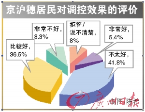 對(duì)于中央及各地政府的救市效果,居民褒貶不一,其中,認(rèn)為有積極效果的受訪者超過(guò)了四成(5.4%認(rèn)為非常好,36.5%認(rèn)為比較好)。