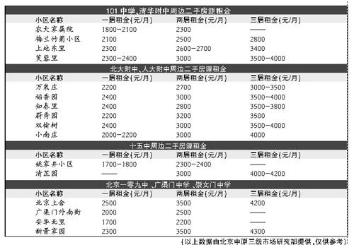 為此,本報特對部分名校周邊重點租賃項目的租金情況進行盤點,希望能給備考的學子和家長們予以幫助。(見表)