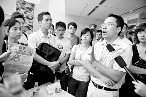9月5日,80多名購房者在浙江省世界貿易中心舉行了抗議,浙江萬科南都房地產有限公司副總經理饒永生第一次與萬科業主“面對面”,并承諾第二天上午公司總經理傅明磊與業主懇談。照片和視頻傳到網絡,網民反映不一,一部分人認為房價回調是正常的,愿賭服輸;另一部分人則表示同情購房者。
