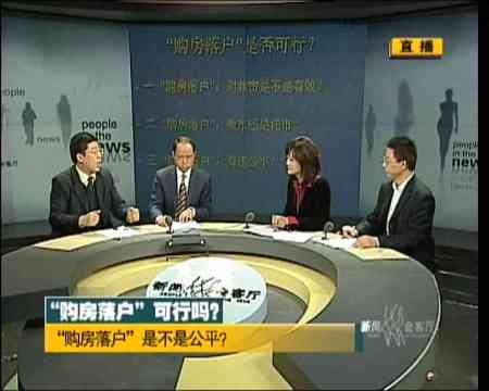 李小萌:歡迎來到正在直播的《新聞會客廳》。金融危機,樓市低迷,手里拿著錢想買房,依然覺得房價過高的購房者著急,開發商著急,政府也著急,著急就要想辦法,幾天以前,我們在討論購房退稅政策是否可行,是否合理。這兩天我們又看到消息說,廣東省將會成為繼多個城市之后首個實現購房落戶政策的省份,一時間人們也在討論購房落戶這個政策。今天我們也來湊個熱鬧,今天請到的嘉賓是北京大學法學院教授王錫鋅。旁邊一位是北京師范大學房地產研究中心教授董藩。他們兩位上次在關于購房退稅政策的時候就是各執一詞,爭個不相上下,看看今天觀點是不是會一致。另外我們還請到了媒體觀察員吳定平,也歡迎你。我們先來通過一段短片來了解一下購房落戶政策。
