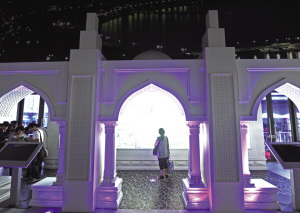 走進展館,仿佛置身于首都巴庫的老城區——內城。阿塞拜疆是人類最古老的定居地之一,巴庫古城至今完整保留著修建于12世紀的汗王宮殿建筑,被稱為“內城”,擁有迷宮般的狹窄巷道,景致如畫。