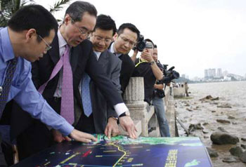 大橋口岸將采用“三地三檢”設(shè)計,相對于珠、澳口岸設(shè)置在拱北灣附近填海修建的同一人工島上,目前港方正考慮在香港機場東北對開海面填海,修筑口岸人工島。記者獲悉,現(xiàn)時三地口岸的總體布置推薦方案已出爐,并初步獲得粵港澳三地政府及運作部門的認可。