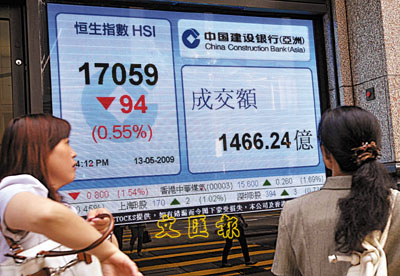 中新網5月14日電 據香港《文匯報》報道,建行遭美銀減持解禁股13日悉數上板,加上再傳有投資者配售建行舊股,在有關消息拖累下,建行全日捱沽,而匯控在連升9天下回吐,拖累港股先升后跌。港股13日再度受制于250天線牛熊分界線,高位回吐近300點,全日倒跌94點,報17059.6點。