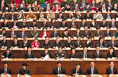 3日在主席臺(tái)就座的還有多名涉港澳臺(tái)事務(wù)高官,如港澳辦主任廖暉、全國(guó)政協(xié)港澳臺(tái)僑委員會(huì)副主任陳佐洱、海協(xié)會(huì)會(huì)長(zhǎng)陳云林、澳門中聯(lián)辦副主任徐澤等,他們?nèi)谈┦卓粗鴪?bào)告認(rèn)真研讀,并不時(shí)拿筆寫寫畫畫,相當(dāng)用心。