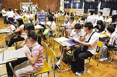 中新網(wǎng)7月8日電 據(jù)香港《文匯報》報道,香港今年6.8萬名小六生中,成功獲派首三志愿學生只有85%,較去年下跌3%,余下過萬名小六生希望落空。升中派位7日發(fā)榜后,即掀起一陣瘋狂叩門潮,不少失意學生及家長紛紛把握最后機會四出往心儀學校“撲”學位,多間英中、名牌中中及直資中學也逼滿心急如焚的人潮。