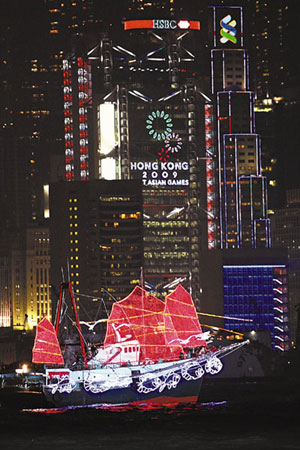 中新網12月2日電 據香港《文匯報》報道,耗資4000萬元制作的香港東亞運動會開幕禮將于本周六舉行,維港將會化身水中舞臺,除會舉行典禮儀式及文藝表演,還會上演花船巡游和歷時15分鐘的煙花匯演。