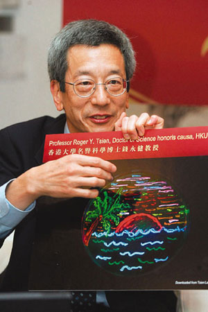 繼香港大學8日向錢永健頒授榮譽博士榮銜外,香港中文大學10日也會向他頒發榮譽理學博士,并由特首曾蔭權親自頒授。錢永健在香港的行程緊湊。他9日首先出席公開講座,以“點綠成金”為題,在香港大學發表演說,當中展示了他的實驗室的最新研究進展。