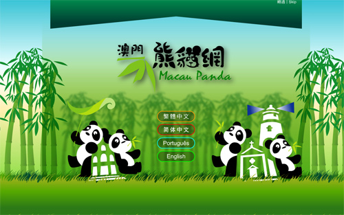 考慮到大熊貓的生活環境和習性,“澳門熊貓網”以綠色及竹葉為主,并以一對大熊貓背靠著澳門著名世遺景點--大三巴牌坊為圖案,吸引用戶的視線,展示澳門、大熊貓及網站的關聯性,亦希望加強市民對大熊貓的關懷及重視。