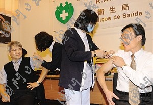 第一階段新流感疫苗接種啟動儀式23日上午10時在衛生局行政樓地下大禮堂舉行,衛生局長李展潤、副局長鄭成業,傳染病防制暨疾病監測部協調員林松,社工局長葉炳權,教青局長蘇朝暉出席。隨后,社會文化司司長辦公室主任譚俊榮、李展潤等參與疫苗接種。