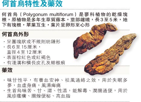 對于有人聲稱在港掘出巨大人形何首烏,李寧漢深感懷疑,他說,早在1996年有市民聲稱以1800元在廣西購下一對千年人形何首烏,一個有乳房、一個有男性性器,他認為非常奇怪,多番檢視及翻查數據也認為無可能,最后切開那人形何首烏后,發現所謂的人形何首烏其實是用芭蕉根雕刻而成。“切開后見到似芭蕉根一樣,有一個個小洞氣孔,還有芭蕉味道!”李寧漢說,不法商人把芭蕉根雕成人形后,在頭頂插上何首烏的枝葉,扮成何首烏,他又提醒市民,何首烏藥效雖佳,但不屬特別名貴的藥材,勿被人欺騙。