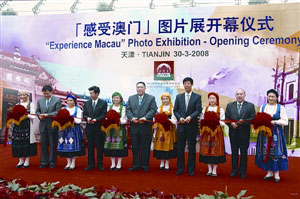 圖片展30日上午9時(shí)半在天津博物館開(kāi)幕,澳門社會(huì)文化司司長(zhǎng)崔世安,中聯(lián)辦經(jīng)濟(jì)部長(zhǎng)周志奎,旅游局長(zhǎng)安棟梁,天津市旅游局副局長(zhǎng)金鐵林、佟景正等主持開(kāi)幕儀式。圖片展為期1周,展出20多幅充滿澳門特色的圖片。