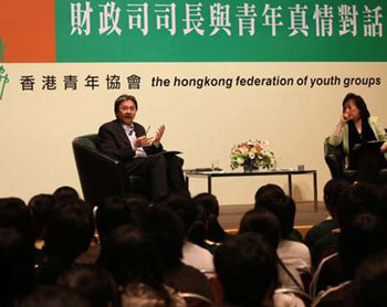 曾俊華在見面會開始之初就明確表示,歡迎學生發問任何問題,鼓勵他們切勿過分緊張。“你們有任何想法,或者你們知道親戚朋友有什么看法,都盡管提出來。如果你們覺得預算案是稍為沉悶的話,你們可以提出其它比較有趣的話題。”
