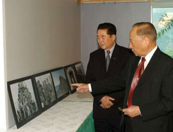 王文燮(右)觀看圖片。(圖片來源:大公報)