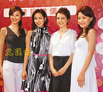 陳倩揚、高海寧、梁倩汶將獎金捐作賑災,由“慧妍雅集”主席楊婉儀(右二)代收。(圖片來源:文匯報)