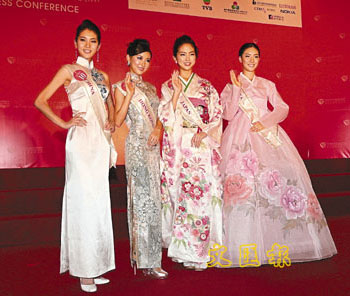 (左起)中國小姐劉暢文、香港小姐馬賽和日本、韓國佳麗,共同展示亞洲靚女美態。(圖片來源:文匯報)
