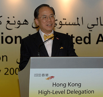 曾蔭權說:“香港一直堅守的基本信念,我們的貿易投資開放政策,以及我們作為環球金融中心和亞洲地區轉口港的重要角色,這種種優勢結合起來,足可讓企業穩操勝券!彼赋,香港是2008年奧運馬術項目比賽的協辦城市,并邀請他們蒞臨香港,一起感受奧運精神。
