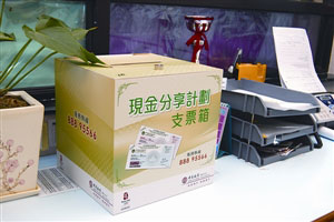 另一方面,澳門銀行界也配合“現金分享計劃”作好準備。其中,中國銀行澳門分行屬下25個分、支行均設立“現金分享計劃”開戶及兌票服務專窗、設置“現金分享計劃”支票箱。
