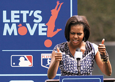 米歇爾近期頻頻在公眾前現身,推動超重兒童多做運動,她上周現身巴爾的摩籃球場,獲得現場大批學童鼓掌及歡呼支持。難怪有資深民主黨軍師指出,“奧巴馬令人動怒;米歇爾令人歡容。”