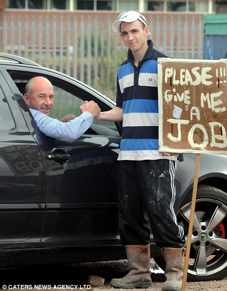 中新網7月26日電 據英國媒體26日報道,23歲的英國青年馬克•威爾頓近日舉著一塊自制的木牌,站在英國最繁華的特倫特河畔斯多克市為自己做起廣告。牌子上寫著“請給我份工作”。
