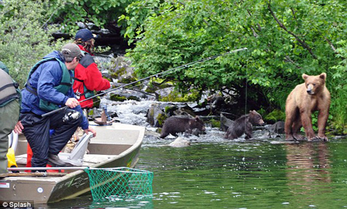中新網7月29日電 據外媒報道,近日,美國前共和黨副總統候選人佩林與親朋在位于阿拉斯加州的沃爾佛林泛舟垂釣時,遭遇一只母棕熊,不過沒有受到傷害。
