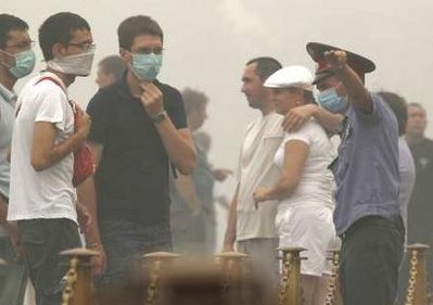 莫斯科多數(shù)公寓,都沒有空調(diào),在炎熱的夏天,如果為了阻擋煙霧,而緊閉門窗,說不定還沒嗆死,就要先熱死,山林大火引發(fā)的霾害,讓市民幾乎無處可逃,莫斯科市府撥出政府建筑以及醫(yī)院的部份空間,成立了123個(gè)收容中心,在那兒,大家可以呼吸到清涼干凈的空氣。