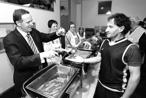 9 月7 日,總理約翰·基來到位于地震災區的艾丁頓福利中心慰問受災民眾。總理的到來受到了福利中心災民和工作人員的熱烈歡迎,令很多災民的臉上露出了久違的笑容。當天,總理與災民進行了親切交流,了解他們的生存狀態和所面臨的困難。在這些與總理聊天的人中,還有一名年僅2 歲的小女孩,她對總理說自己以前曾在電視上見過他,惹得總理哈哈大笑。女孩的母親黛比·布朗表示,自己是今天剛來福利中心的,總理的到來極大地增強了人們的重建信心。