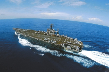 “卡爾·文森”號是美國十艘核動力航母之一。由該航母領銜的航母編隊號稱美軍“第一航母戰斗群”。除了“卡爾·文森”號航母,戰斗群還包括“邦克山”號巡洋艦、“斯托克代爾”號驅逐艦、“格里德利”號驅逐艦以及第17航母艦載飛行聯隊。