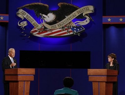阿拉斯加州長佩林指出,共和黨總統候選人麥凱恩希望“將黨派偏見放在一邊”,以幫助解決美國當前的經濟危機。拜登則指出,在共和黨白宮執政這8年期間,華爾街到了今天這般地步。