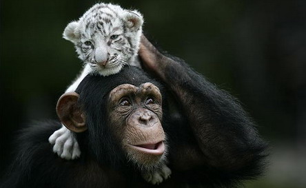 猩猩與白虎幼仔