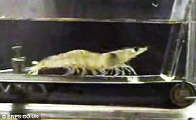科學家為試驗蝦在尋找食物時最遠可以“旅行”的距離,日前將一只用作試驗的蝦放在一個水中小型跑步機上。這只蝦隨后在跑步機上“奔跑”起來,速度竟然高達每分鐘20多米。而為了尋找到食物,它可以在跑步機上“奔跑”長達3個多小時。