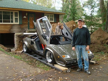據(jù)俄羅斯新聞網(wǎng)報道,這名美國人在自家地下室,用時17年手工打造出自己的超級蘭博基尼跑車。但如何從地下室脫出跑車又成一問題,為此Imhoff不惜墻倒屋塌,專門找來掘土機(jī)在自己房屋下開出一個大洞,成功將跑車?yán)鰜。在這個過程中,他唯一擔(dān)心的是砸下了的石頭會否砸壞他的愛車。