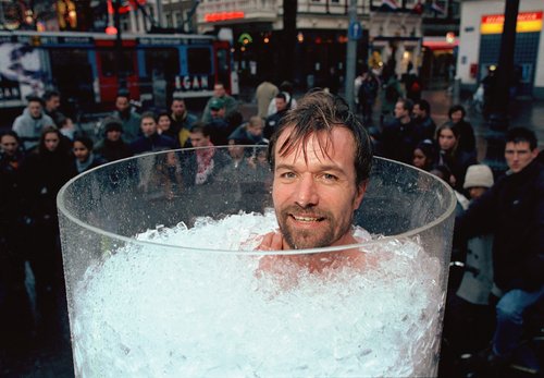 綽號“冰人”的荷蘭人威姆·霍夫因為具有超常的抗凍能力而聞名于世。如今,他又要向新的世界紀錄發起沖擊了,12月20日,他將在德國科隆嘗試打破由他自己保持的在裝有大量冰塊的5英尺(1.52米)高的樹脂玻璃容器中半裸堅持的最長時間紀錄。