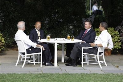 4人依各自喜好喝不同牌子的啤酒。奧巴馬喝Bud Light,拜登喝無酒精的Buckler,蓋茨喝波士頓啤酒Sam Adams Light,克勞里喝Blue Moon。記者被限制在50英尺外,只能照相30秒鐘。