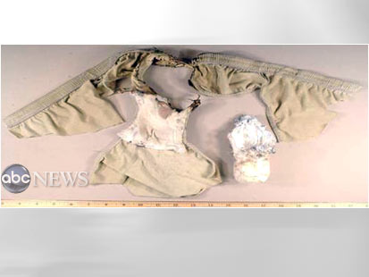 美國廣播公司公布的圖片顯示,內(nèi)褲炸彈是一條襠部被縫上一包炸藥的內(nèi)褲。所有照片旁都有一把尺子,以說明相關(guān)物品的尺寸。